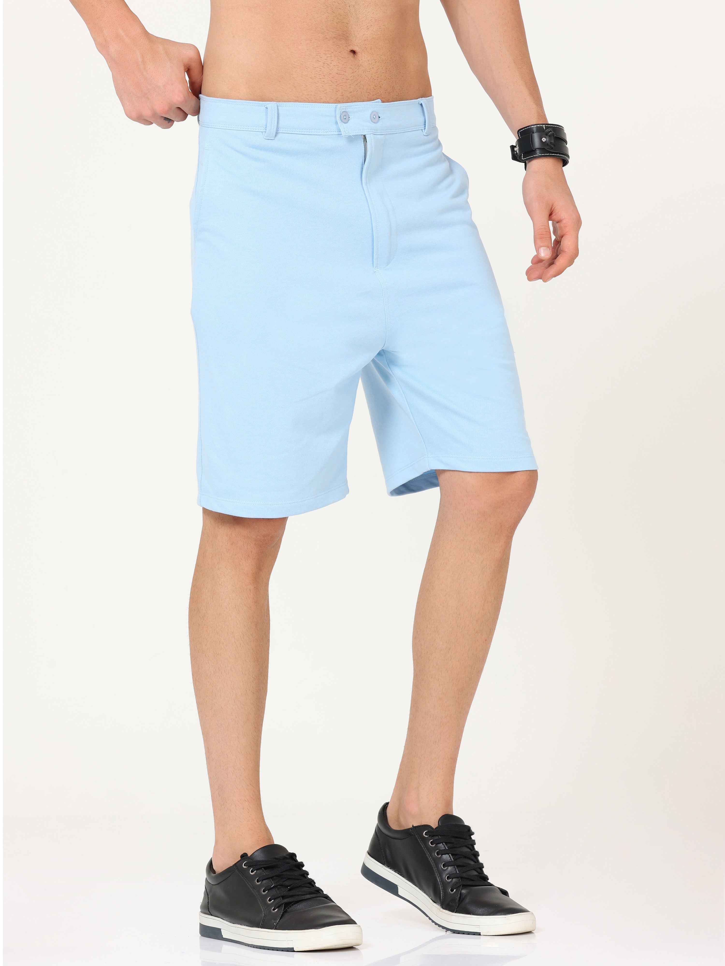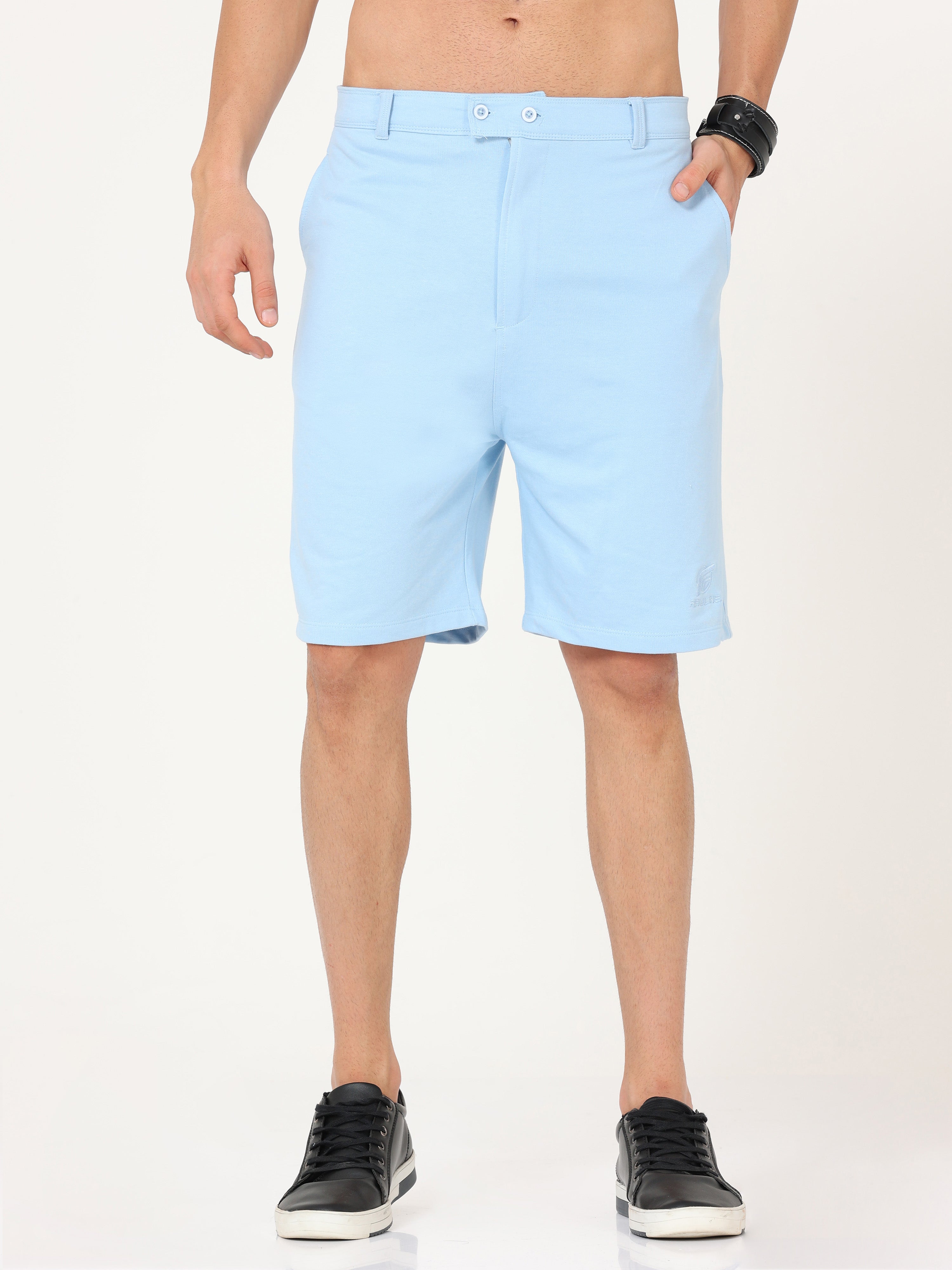 Sky Blue Solid Loop Knit Shorts